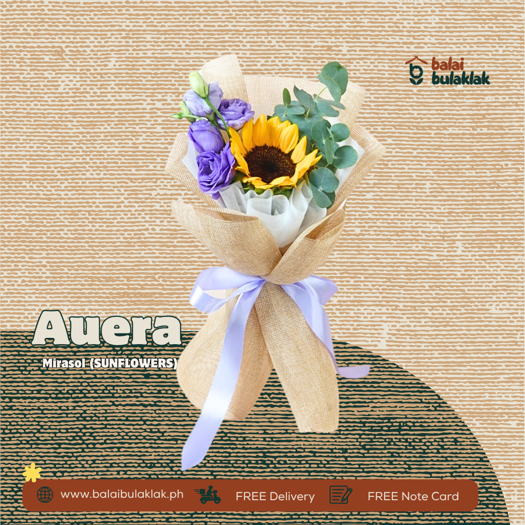 Sunflower paired with purple fillers — classy at modern touch, perfect for someone na gusto mong pasayahin.